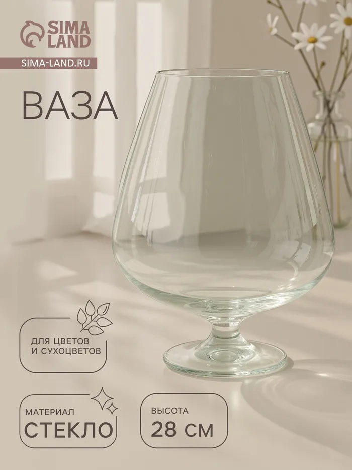 Ваза «Бренди», бокал на ножке, 5 л, d=13.5 см 28×20 см, стекло, прозрачная — Характеристики