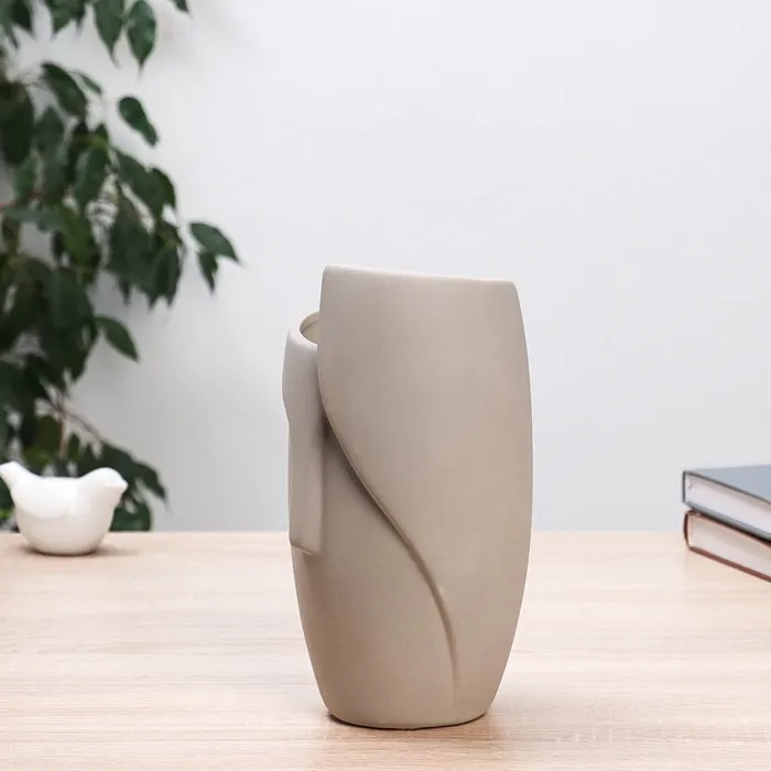 Серая настольная ваза с абстрактным узором — это современный акцент для вашего интерьера. Её сдержанный серый цвет и уникальный дизайн делают её универсальным элементом декора, который подчеркнёт стиль любого пространства.