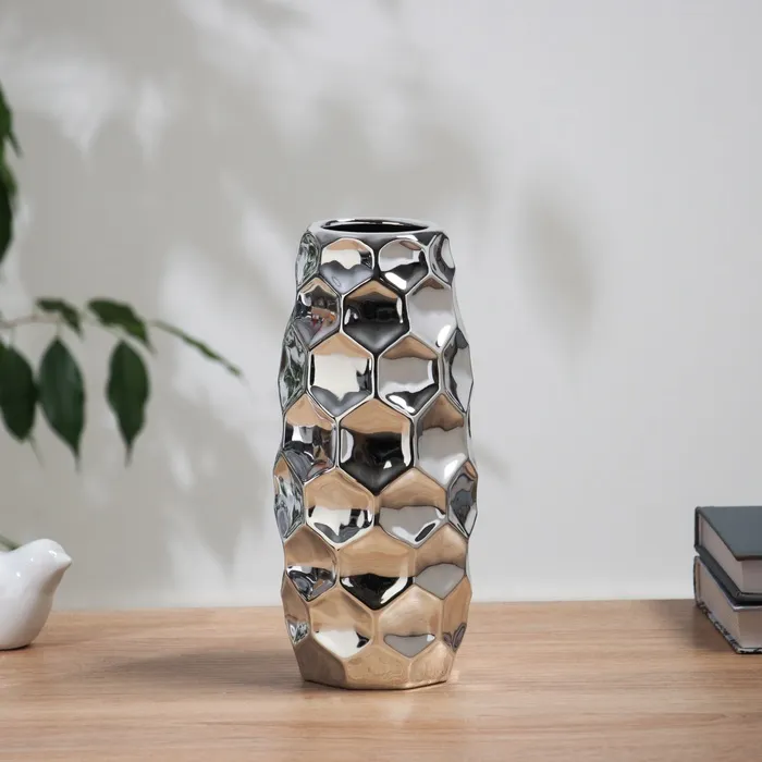 Ваза «Дарио», соты, d=5 см, 21×7 см, керамика, серебристая