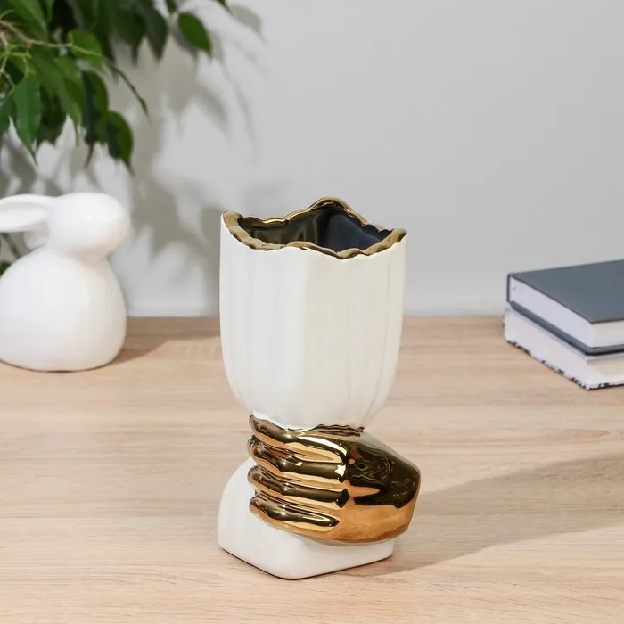 Создайте атмосферу праздника и уюта в вашем доме! Эта настольная ваза высотой 19,5 см с золотой рукой станет стильным акцентом в любом интерьере, добавляя нотки элегантности и изысканности.
