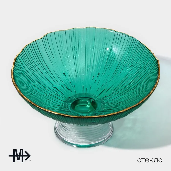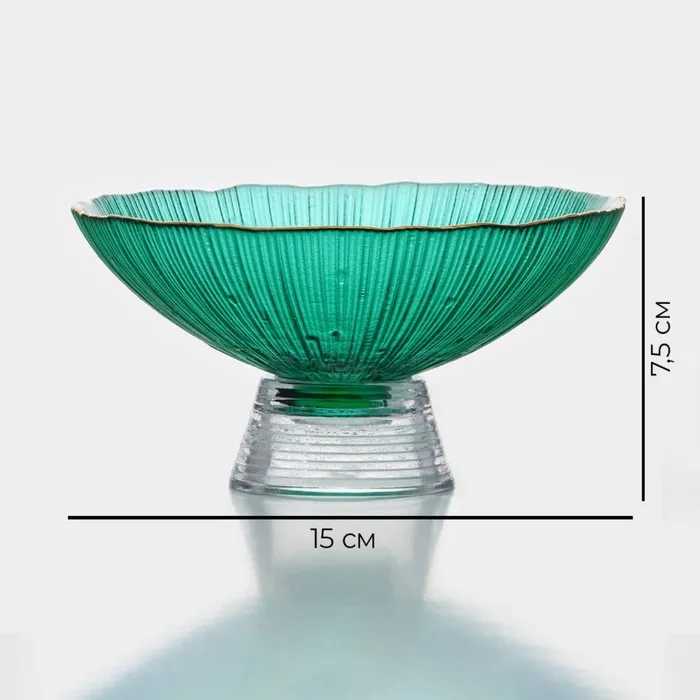 Ваза для фруктов Magistro «Фейерверк», 400 мл, 15×7.5 см, стекло, изумрудная — Характеристики