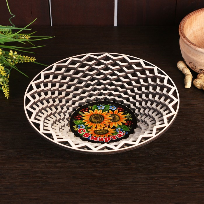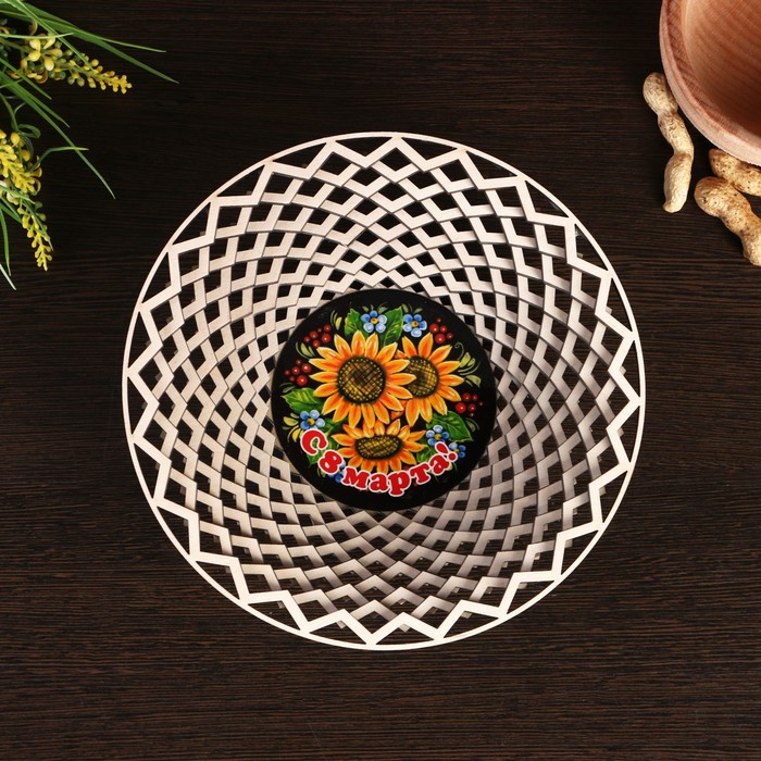 Ваза для хлеба «8 марта. Подсолнухи», d=20 см, дерево