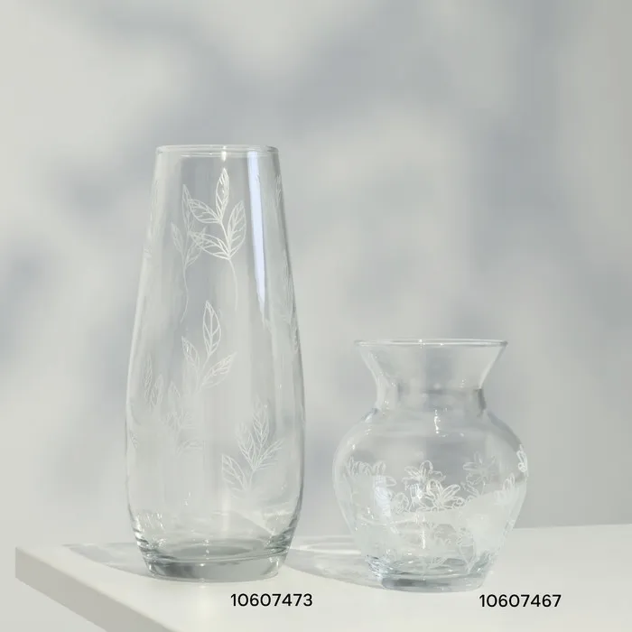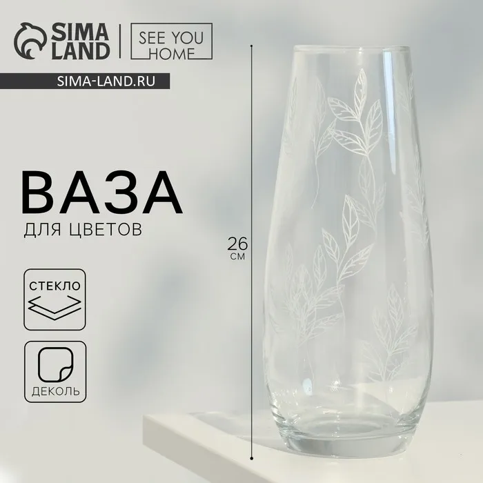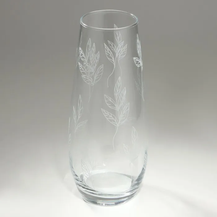 Ваза для цветов «Ботаника» из прозрачного стекла с изящным рисунком в виде белых листьев, станет стильным украшением любого интерьера.
