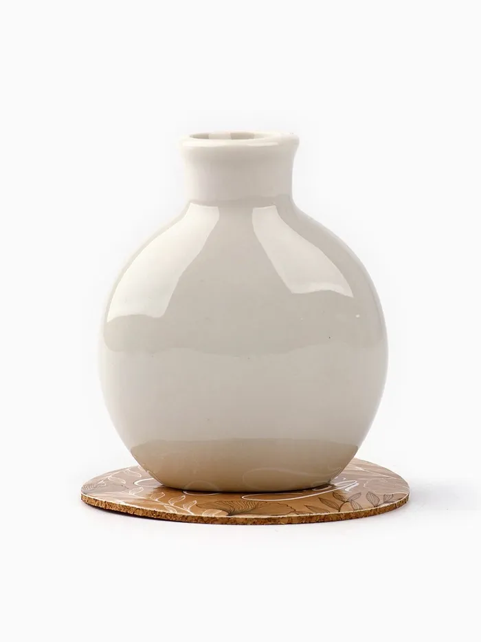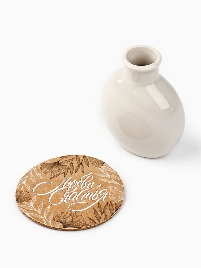 Декоративная ваза отлично дополнит любой букет или флористическую композицию. Так же, миниатюрная ваза, выполненная из керамики будет актуальна как самостоятельный предмет интерьера. В комплекте идет пробковая подставка с красивым рисунком, который отлично сочетается с самой вазой. Ваза-мини с подставкой - прекрасный подарок человеку со вкусом на любой праздник.