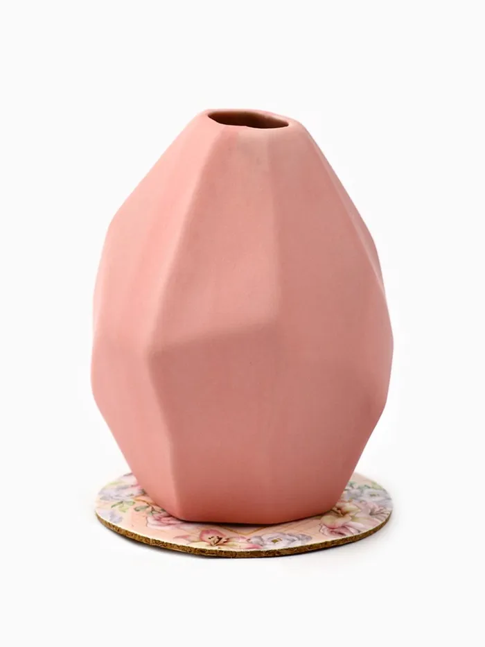 Декоративная ваза отлично дополнит любой букет или флористическую композицию. Так же, миниатюрная ваза, выполненная из керамики будет актуальна как самостоятельный предмет интерьера. В комплекте идет пробковая подставка с красивым рисунком, который отлично сочетается с самой вазой. Ваза-мини с подставкой - прекрасный подарок человеку со вкусом на любой праздник.
