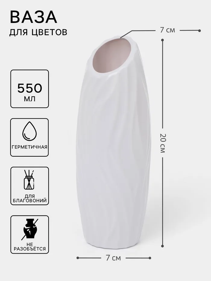 Ваза для цветов, пластик, 550 мл, 7×20 см, серая — Характеристики