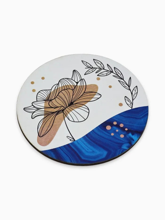 Ваза имеет стильную подставку с изображением цветка в нежных тонах. Подставка выполнена из дерева с покрытием из эпоксидной смолы с эффектом «мрамор».