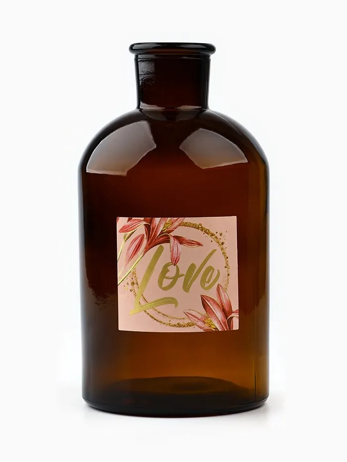 Стильная стеклянная ваза для цветов «Love объемом 1 литр.