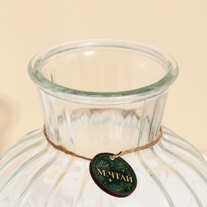 Ваза для цветов стекло новогодняя «Мечтай» прозрачная, высота 19,5 см