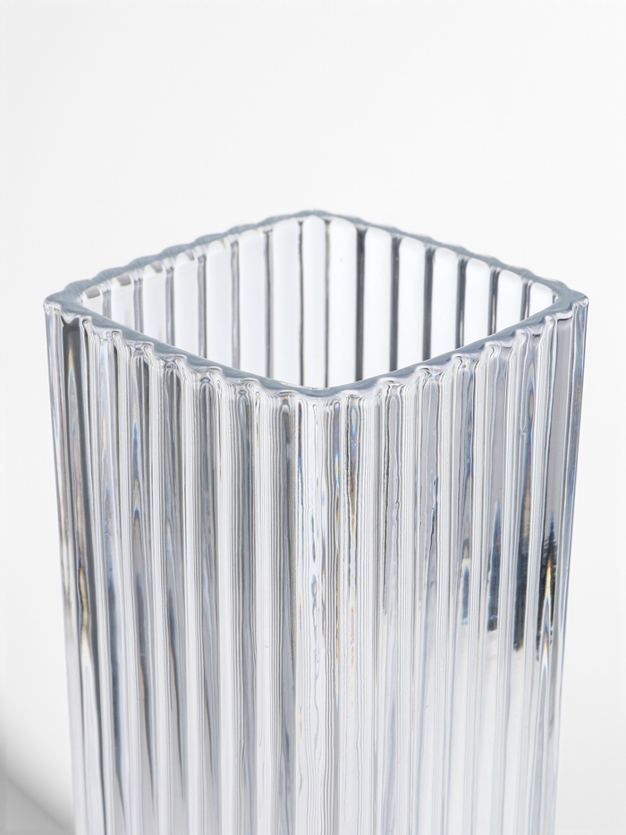 Такая ваза станет не просто ёмкостью для цветов, элементом декора, способным украсить гостиную, кухню или рабочий стол. Прозрачность стекла придает воздушность, а четкие линии полос придают композиции структуру и порядок. Ее можно использовать как самостоятельный объект или как часть стильной сервировки.