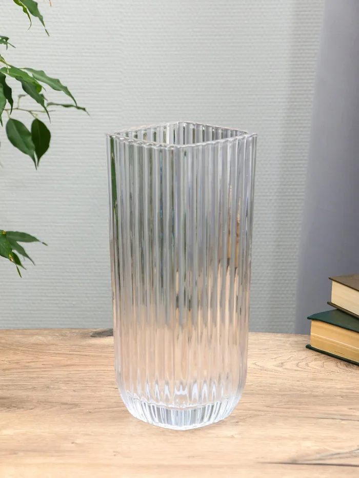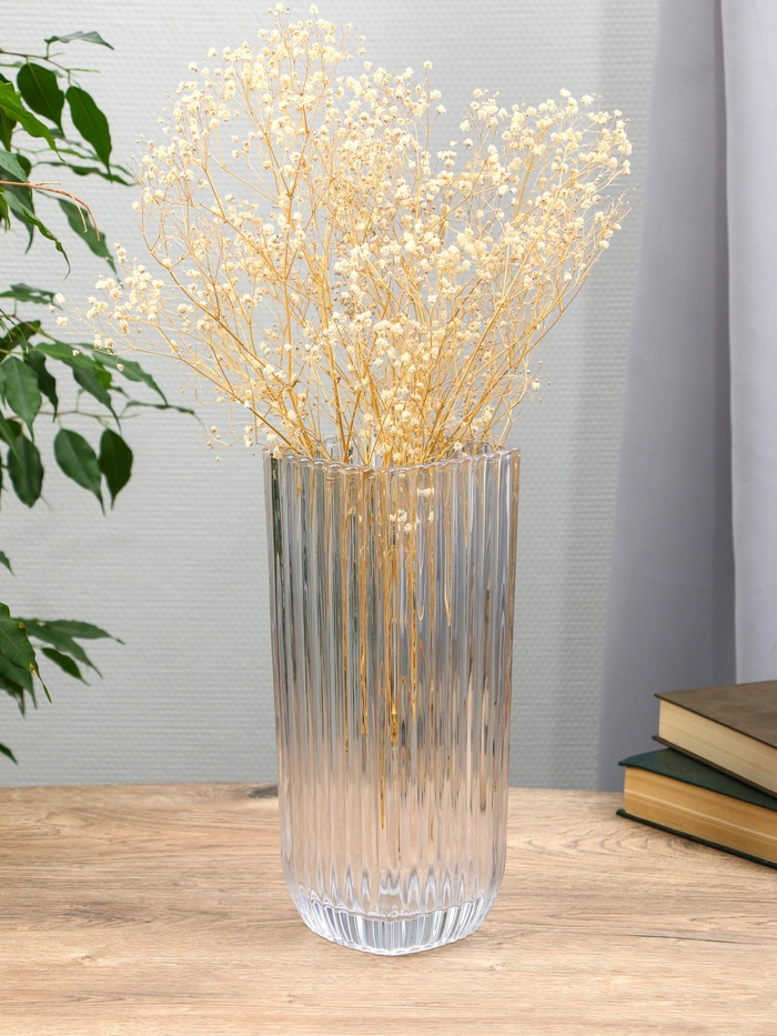 Создайте атмосферу уюта и стиля с настольной вазой из прозрачного стекла — универсальным акцентом для любого интерьера. Изящная форма и лаконичный рисунок полос составляют ее современный дизайн, который легко сочетается как с классическим, так и с минималистичным оформлением пространства.