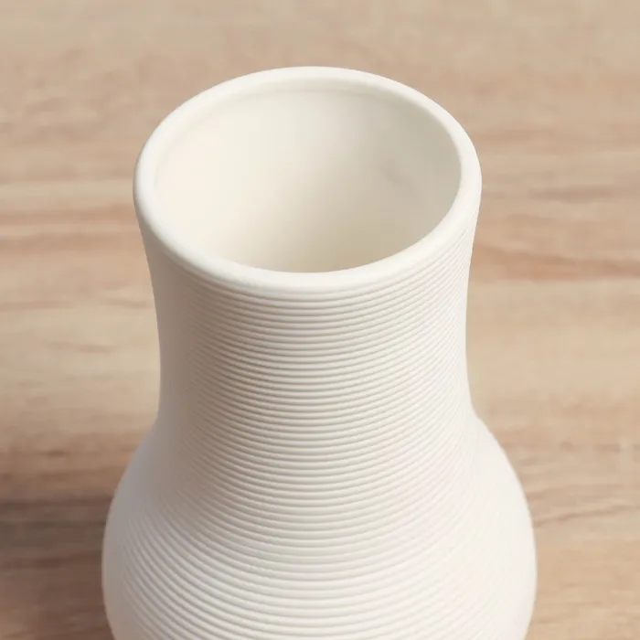 Настольная керамическая ваза с рельефным оформлением. Белый цвет подчеркивает изящность и универсальность. Высота 14 см, с диаметром 6 см - прекрасно дополнит интерьер любого стиля, став его утонченной деталью.