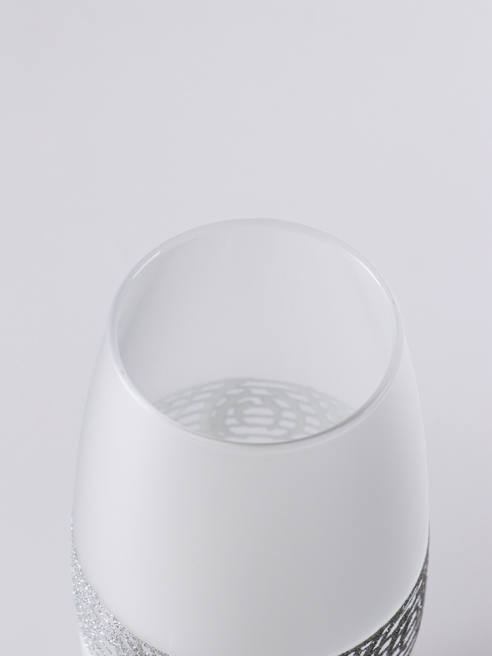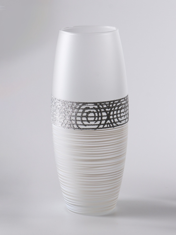 Овальный силуэт вазы поддерживает стебли и помогает создавать пышные аранжировки. Прозрачное стекло визуально не утяжеляет пространство, а серебристое напыление добавляет мерцания. Ваза раскрывает естественную красоту живых или сухоцветов, делая их главным элементом декора.