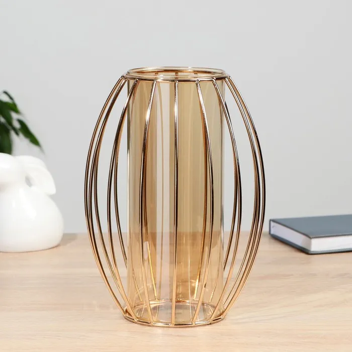 Добавьте изысканности в интерьер с помощью стильной вазы. Настольная стеклянная ваза «Ангстрем» с металлическими дугами, 13×15×25 см – это современное украшение, которое подчеркнет уют и индивидуальность пространства. Ее конструкция из стекла и металла создает эффект легкости и прозрачности, а золотистый цвет добавляет нотки роскоши и тепла.