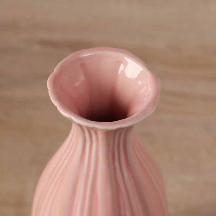 Представляем вам изысканную настольную вазу, которая станет настоящим украшением вашего интерьера. С её нежным розовым цветом и рельефным оформлением, она добавит нотку романтики и уюта в любое пространство, будь то дом или офис.