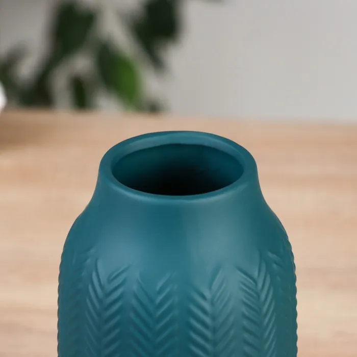 Керамическая ваза, которую можно выгодно расположить на любом столе, позволит внести изящные акценты в ваш интерьер. Зеленый цвет вазы добавляет свежие нотки в обстановку, а рельефное оформление поверхности создает изысканную игру теней. Высота вазы составляет 20,5 см, что делает ее оптимальной для размещения небольших цветочных композиций.