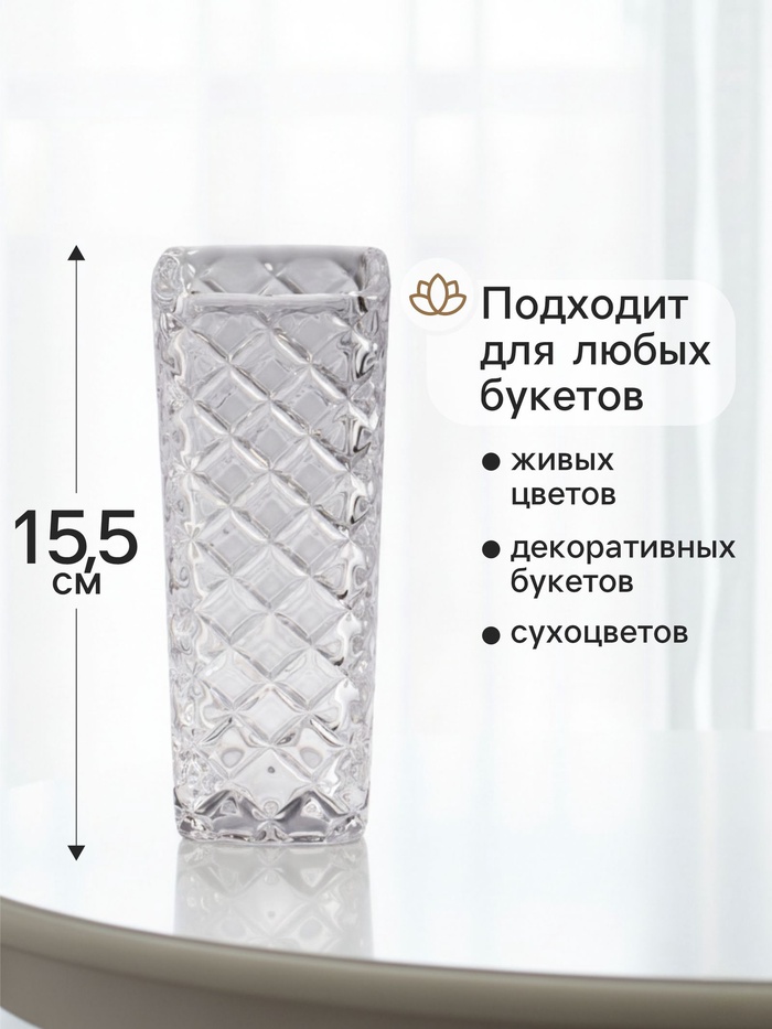 Ваза «Геометрия», диагональ, 15.5×5.5 см, стекло, прозрачная — Характеристики