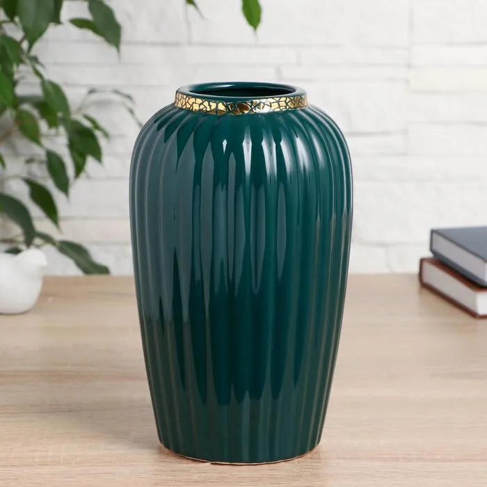 Ваза «Геометрия люкс», 8×23 см, керамика, зелёный
