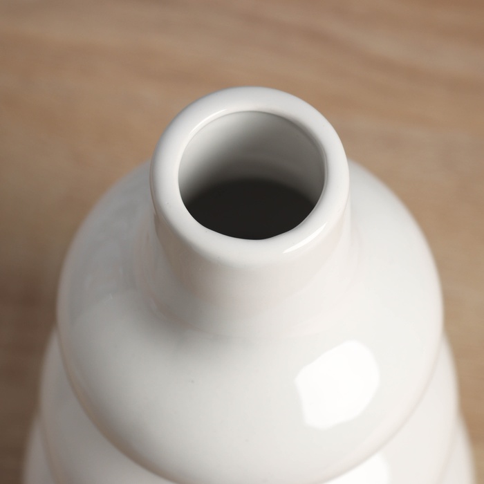 - Выразительный абстрактный силуэт: Чередующиеся кольца разного диаметра образуют объёмный рельеф. Такой дизайн интересно смотрится под разными углами и создаёт игру света и тени на белой глазурованной поверхности.