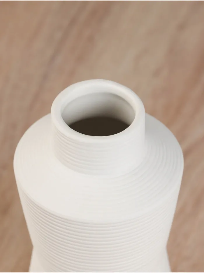 Керамическая ваза-бутылка белого цвета с рельефным оформлением станет изысканным элементом вашего интерьера, привнося элегантность и утонченность в любое пространство.