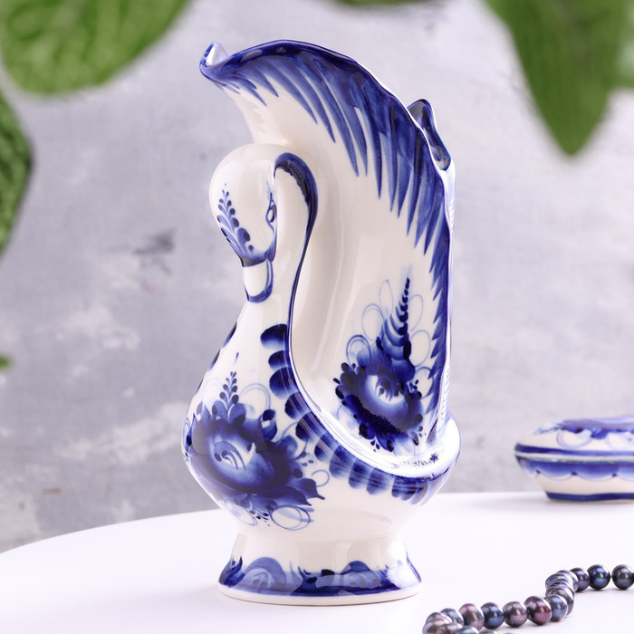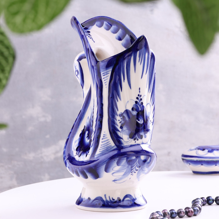 Ваза гжель «Лебедь», бело-синяя, керамика, 22×12 см,