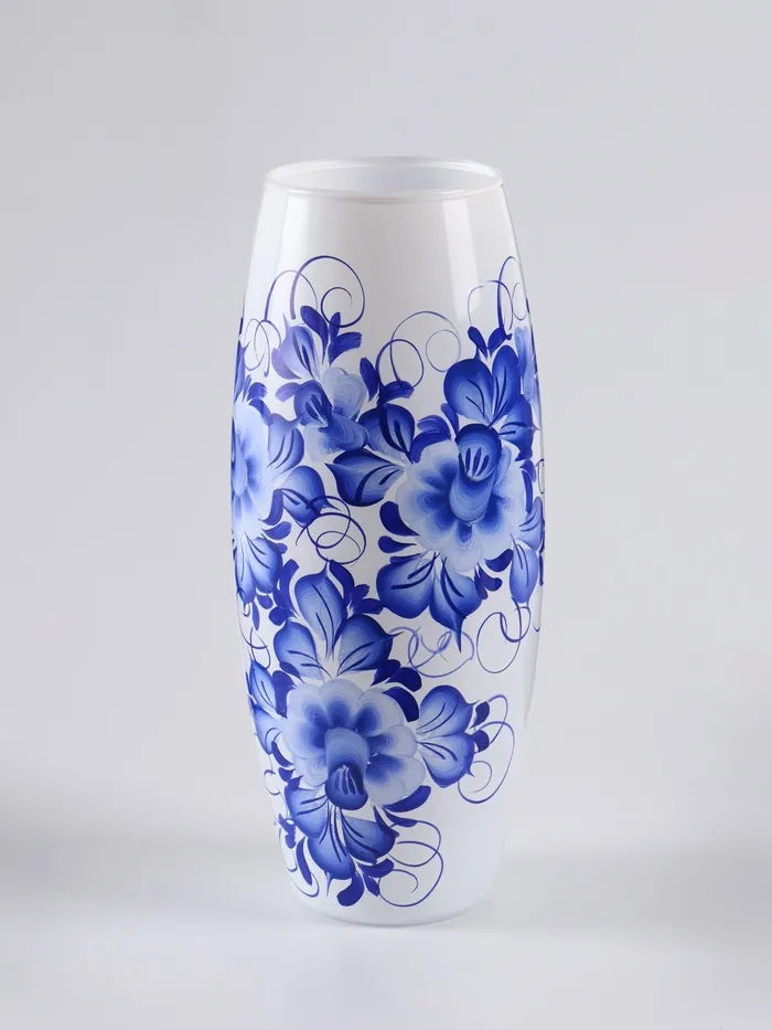 Ваза «Гжель на белом», h=26 см, стекло — Характеристики