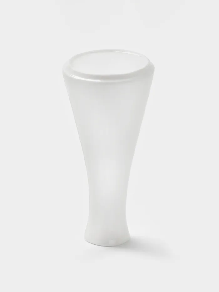 Миниатюрный фарфоровый сосуд для цветочных композиций. Настольная ваза — простой и функциональный аксессуар для небольших букетов или одиночных цветов. Белый цвет и лаконичная форма подчёркивают универсальность изделия в интерьере.