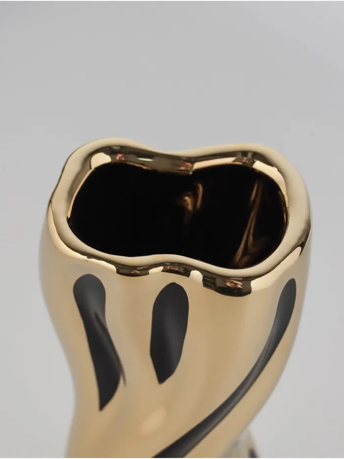 Украсьте интерьер с элегантной керамической вазой! Эта настольная ваза высотой 18 см станет изысканным дополнением любого пространства. Золотисто-чёрный дизайн привносит нотку роскоши и стиля, создавая уютную атмосферу в вашем доме.