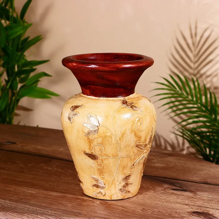 Ваза «Антика», 10×10×9 см, дерево Джати, бежевая