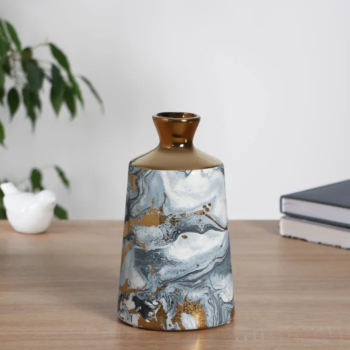 Создайте свою композицию: Эта ваза создана стать основой для ежедневных или праздничных аранжировок. Ее скульптурная форма и благородное сочетание черного с золотом делают ее самодостаточным предметом декора, который преобразит сервировку стола, каминную полку или рабочий кабинет. «Кэли» — выбор для тех, кто ценит в деталях гармонию материала, цвета и формы.