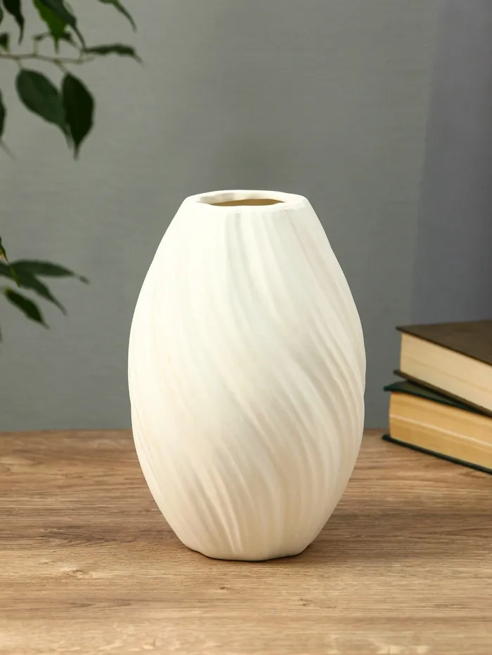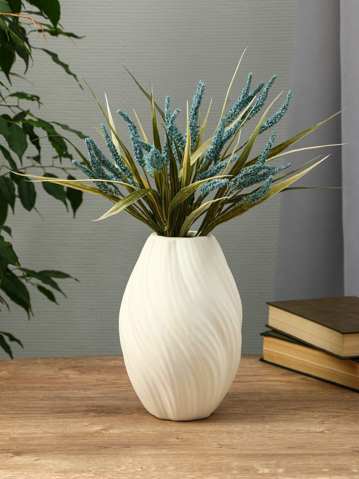 Керамическая ваза декоративная настольная «Губки», для цветов, сухоцветов, v-1.2 л, 14×10 см, белый