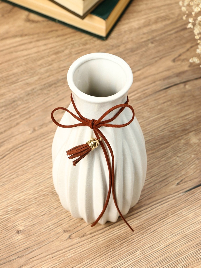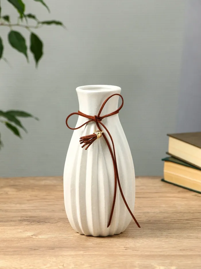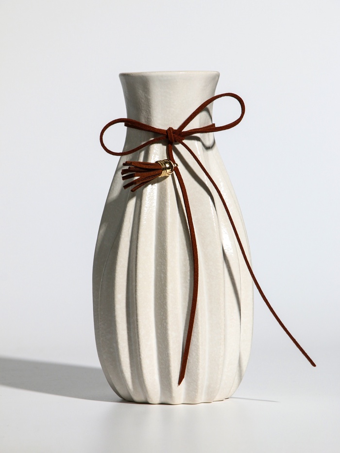 Ваза керамика настольная "Шерон" зауженная шнур, 19,5х8,5х6 см, белый — Характеристики