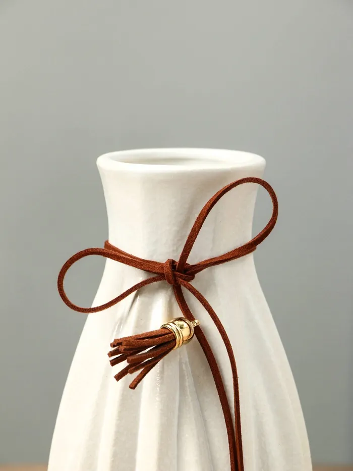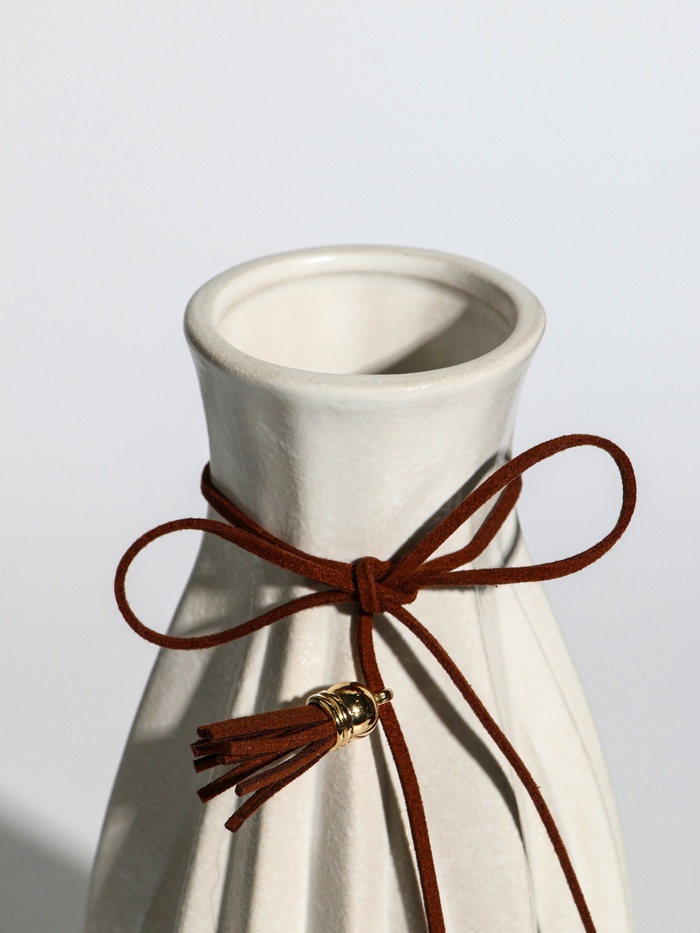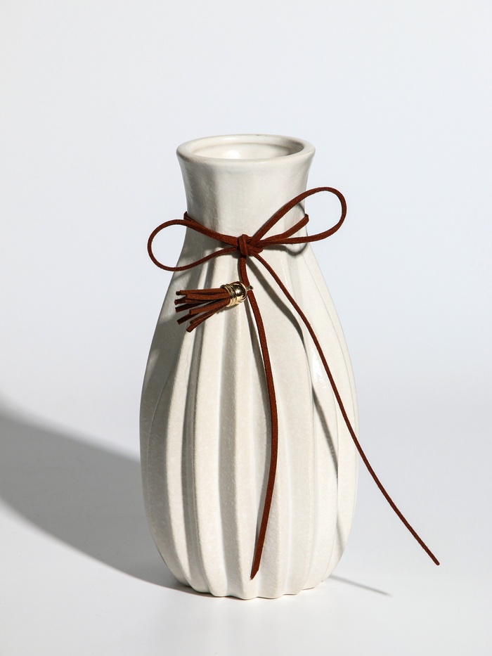 Ваза керамика настольная "Шерон" зауженная шнур, 19,5х8,5х6 см, белый