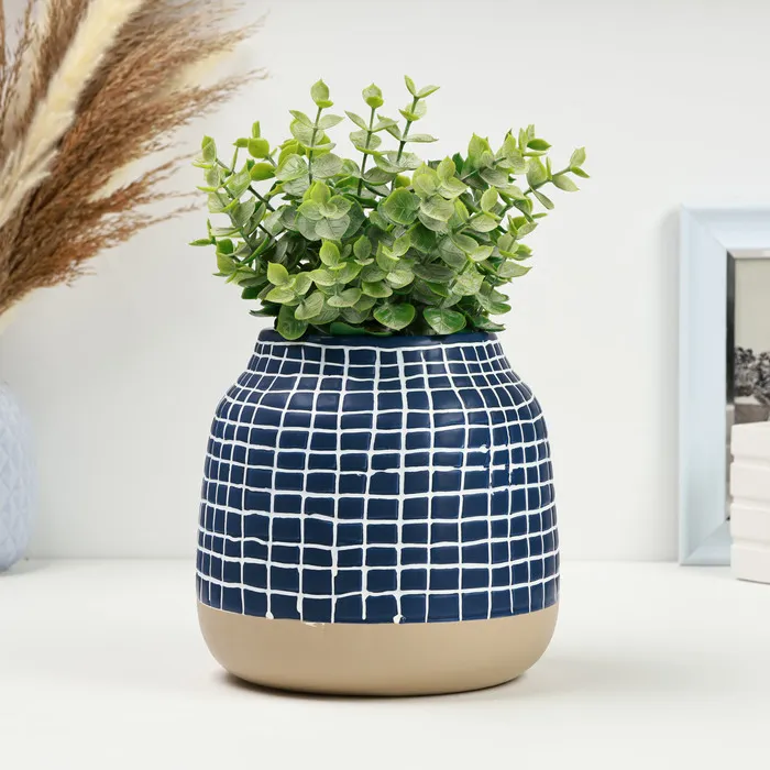 Ваза «Клетка», 15×15×15.5 см, керамика, синяя — Характеристики