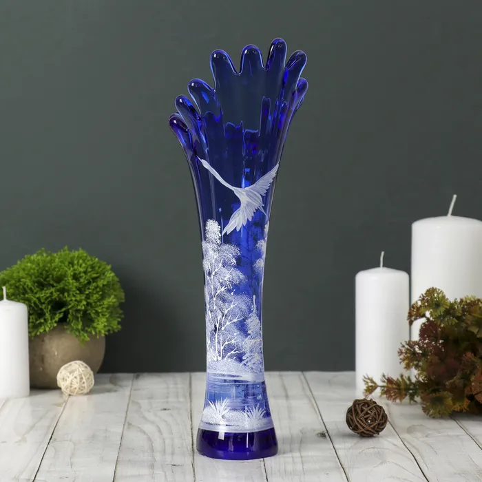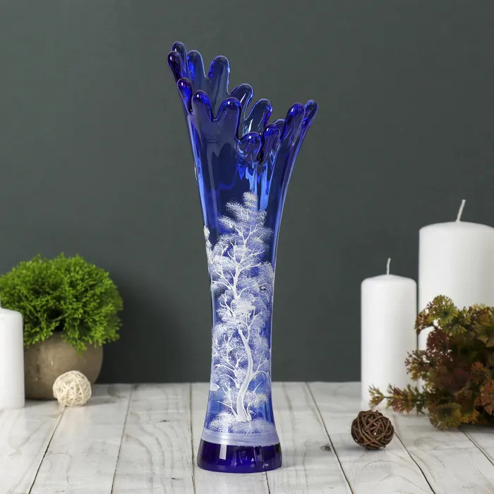 Ваза «Коралл», h=28 см, стекло, ручная роспись, синяя преобразит пространство и как самостоятельный элемент декора. Наполните интерьер уютом!