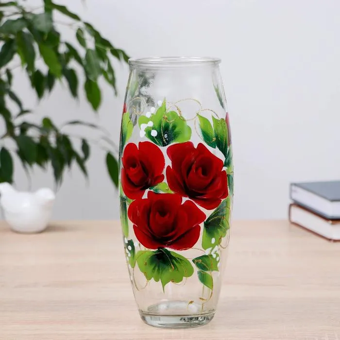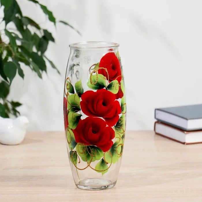 Ваза «Красная Роза», d=7 см, 10×23 см, роспись на прозрачном стекле — Характеристики