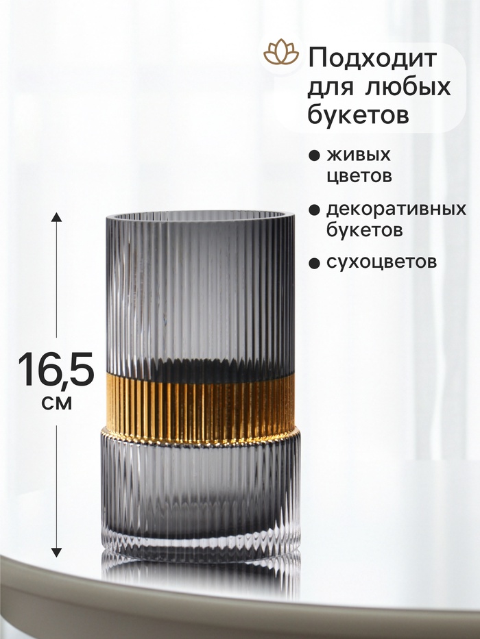 - Универсальный дизайн: Рельефное стекло и строгий силуэт делают вазу уместной в любой обстановке. Она дополнит скандинавский минимализм, классическую гостиную или современный лофт, не перегружая пространство.