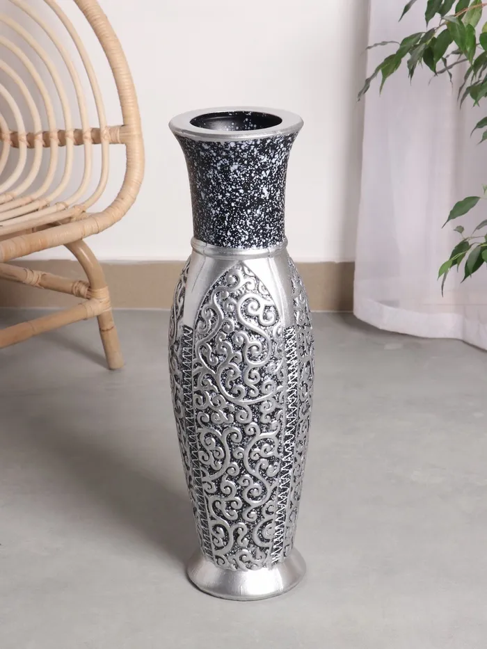 Ваза напольная «Нико», 60×15 см, керамика, серебристо-чёрная