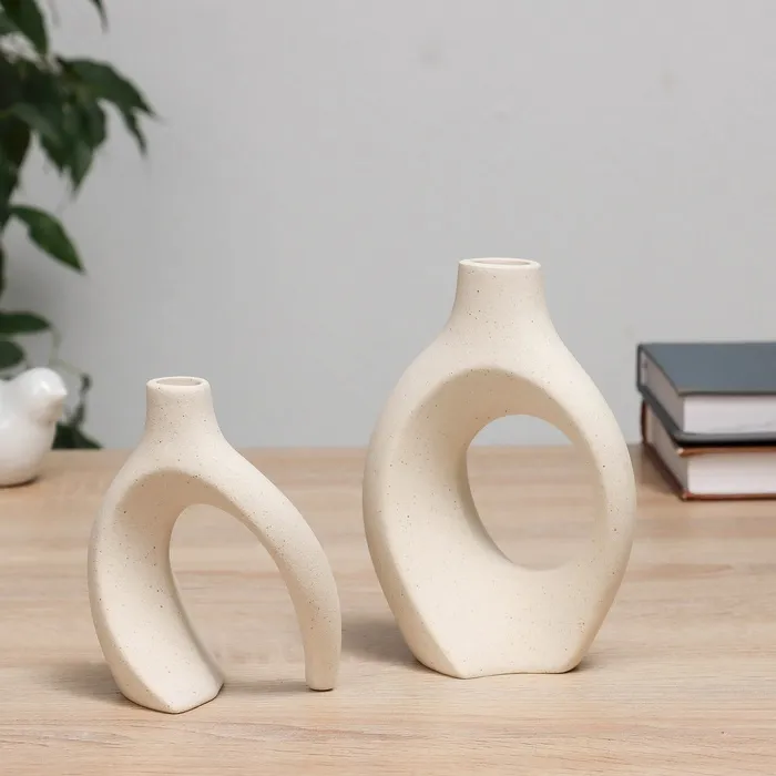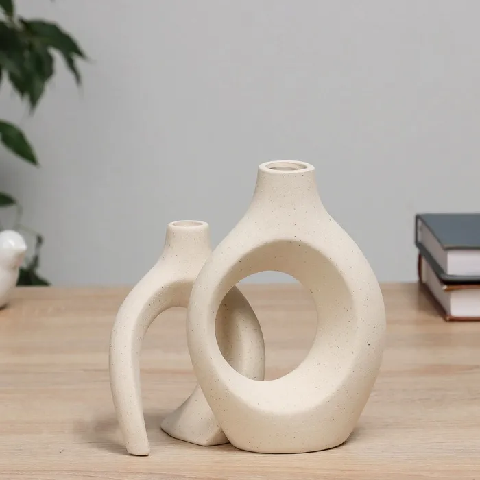Ваза «Ловис», 14×7×15 см, керамика, набор 2 шт, светло-бежевая — Характеристики