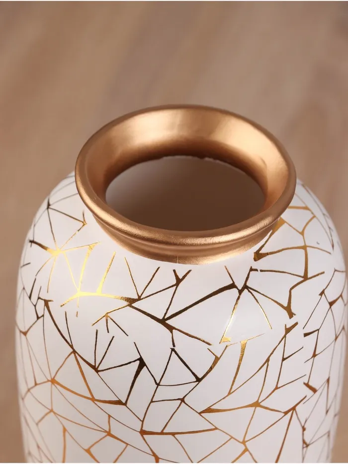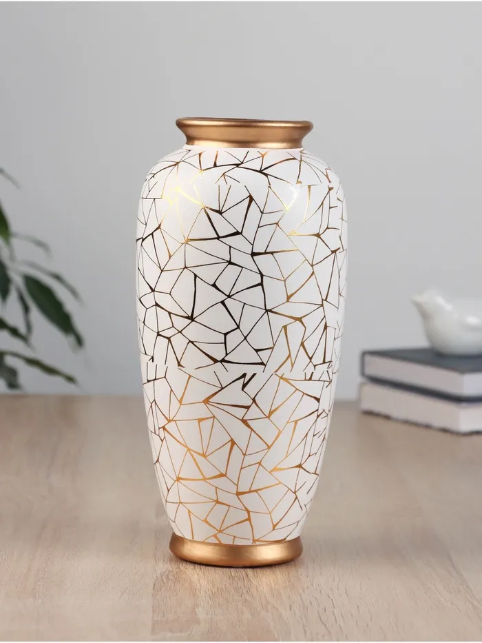 Создайте атмосферу утончённости и стиля с вазой, которая будет привлекать внимание! Настольная ваза «Метте» добавит изюминку в ваш интерьер благодаря своему уникальному золотисто-белому дизайну. Эта ваза станет не только функциональным предметом, но и стильным акцентом в вашем доме.