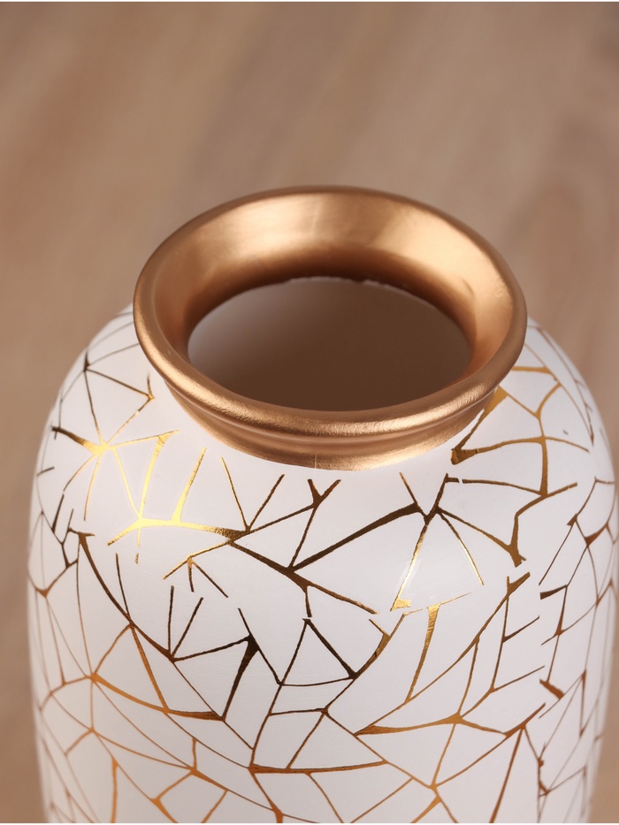 - Элегантный стиль: Искусно оформленная ваза «Метте» с её гармоничным сочетанием белого и золотого цветов станет прекрасным дополнением к любому контексту – от классики до современного минимализма.