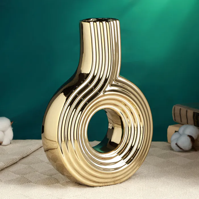 Ваза «Голден тайм», 33×7.5×3 см, керамика, золото
