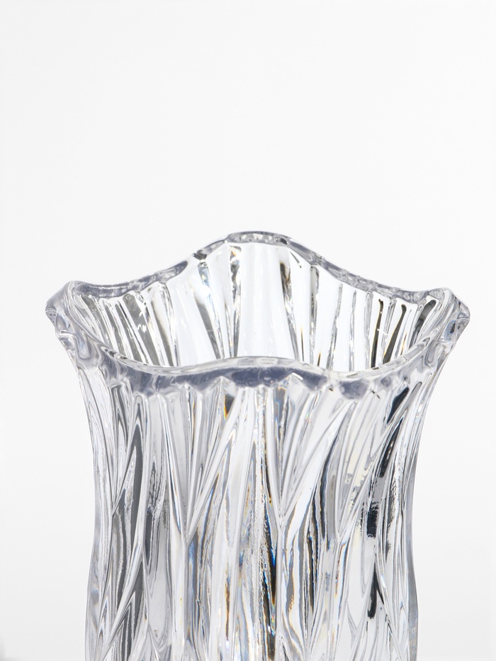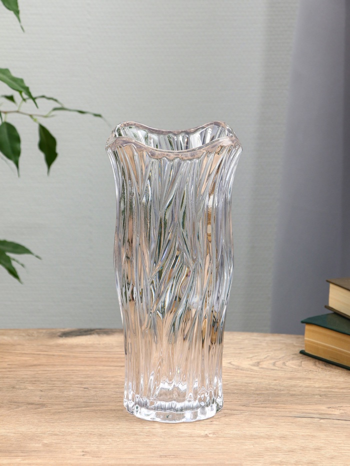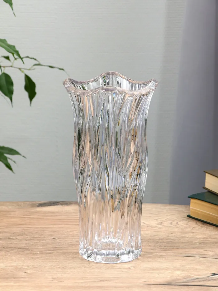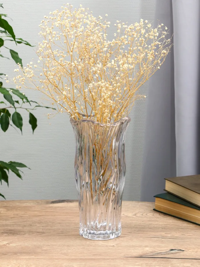 - Прозрачное стекло обеспечивает универсальность вазы, позволяя ей вписываться в различные стили декора.