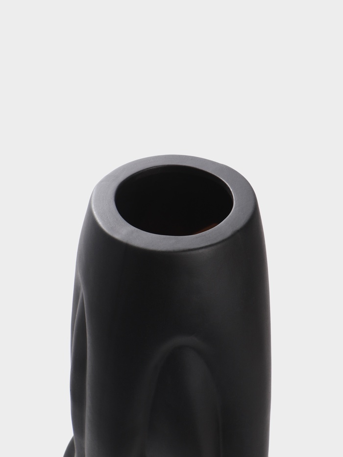 Скульптурный акцент для вашего интерьера. Напольная ваза «Бертольдо» из чёрной керамики — это не просто сосуд для цветов, а самостоятельное арт-объект. Её выразительный рельеф и монументальная форма создают в пространстве ощущение основательности и стиля.
