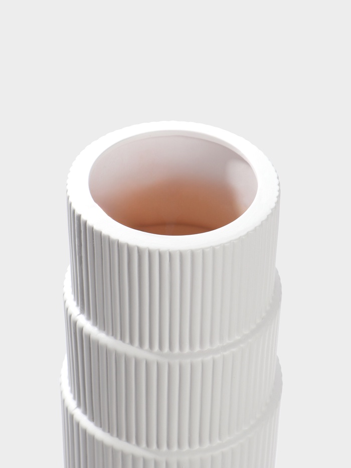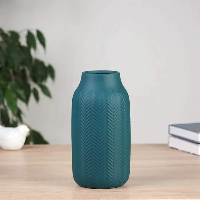 - Выразительный рельеф: Поверхность вазы украшает объемный узор. Он добавляет фактурности, делает объект интересным для тактильного и визуального изучения, превращая простую форму в арт-объект.