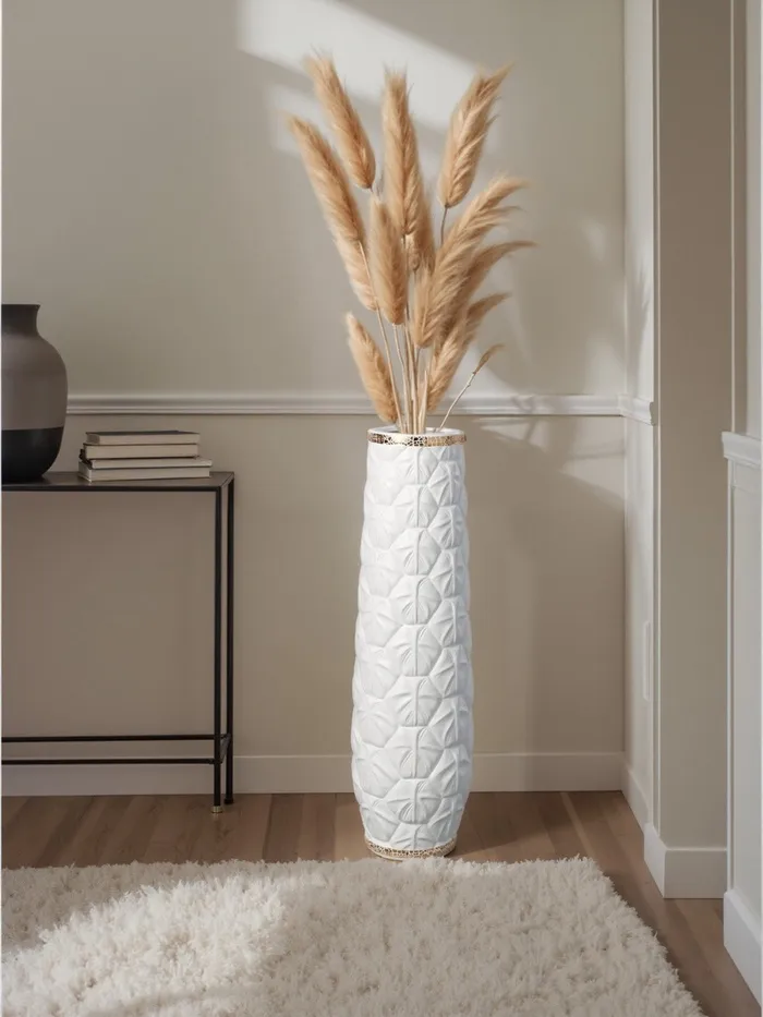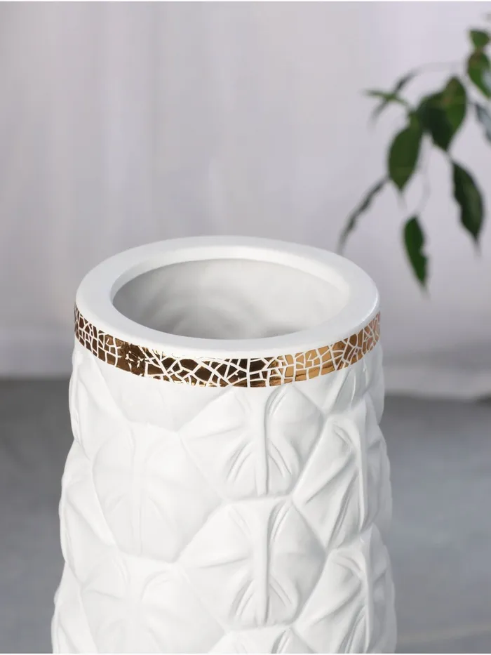 Напольная ваза «Хадвин» — это стильное дополнение к вашему интерьеру. Её белый цвет и рельефное оформление придают особую элегантность. Высота вазы в 60 см делает её заметным акцентом в любом помещении.