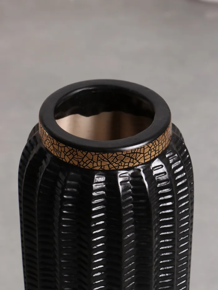 Добавьте элегантности в ваш интерьер! Напольная ваза высотой 59 см – это стильный элемент декора, который привнесет изысканность и утонченность в любое помещение. Чёрный цвет с золотистым оформлением делает её универсальным аксессуаром для различных стилей интерьера.