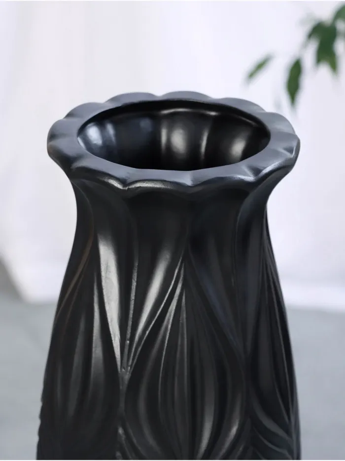 - Стильный дизайн: черный цвет и рельефная текстура делают вазу универсальным аксессуаром, который легко впишется в любой интерьер.
