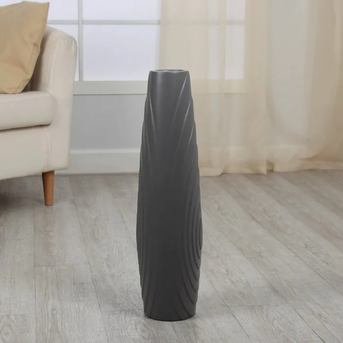 Элегантная 58-сантиметровая серая напольная ваза из керамики подчеркнёт вашу гостиную или холл, благодаря своему утончённому стилю и изысканному рельефному оформлению. Это не просто ваза — это элемент декора, который добавляет пространству глубину и индивидуальность, улавливая современное очарование и классический шарм.