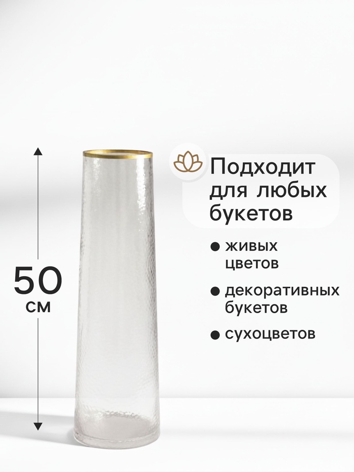 Ваза напольная «Линней», 50×15 см, стекло, прозрачная — Характеристики